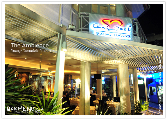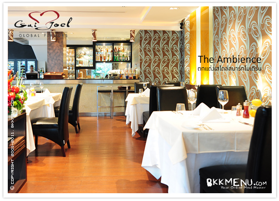 Gai & Joel Global Flavors คือร้านที่เกิดจากคู่รักผู้หลงใหลการทำอาหาร มากด้วยฝีมือและประสบการณ์เป็นเชฟในร้านโรงแรมห้าดาวของเมืองกรุงมานานหลายปี แว่บแรกสะดุดตากับป้ายชื่อที่อแดปท์จากโลโก้การ์ดแต่งงาน บรรยากาศร้านตกแต่งไว้อย่างเรียบหรูในสไตล์สมาร์ทโมเดิร์น กำแพงกระจกใสมองออกไปเห็นสวนขนาดย่อมกับวิวถนนหลังสวน บนชั้นสองเติมสีสันด้วย Open Kitchen ชมเชฟปรุงอาหารอยู่อย่างพิถีพิถันกันเพลินๆ และห้องส่วนตัวเปิดประตูออกมาเป็นระเบียงเล็ก สำหรับรับลมเย็นได้ด้วย ย่ิงค่ำยิ่งดูโรแมนติก เหมาะสำหรับมื้อดินเนอร์มากๆ