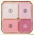 เริ่มต้นด้วยการใช้สี 1 Jeweling Pearls ทาให้ทั่วเปลือกตาและบริเวณหัวตา เพื่อให้ดวงตาดูสดใสและอ่อนหวาน