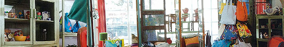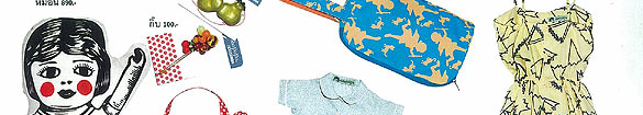 กระเป๋า หมอน สมุด และสิ่งของจุกจิก ในบรรยากาศแบบร้านขายของชำ ที่ให้ความรู้สึกอบอุ่นจนได้กลิ่นความสนุกในวัยเด็กลอยมาตามลม ส่วนดีไซน์ของไม่วิ่งตามเทรนด์หรือเกาะติดแฟชั่น เน้นใช้ได้จริงแบบสารพัดประโยชน์ ให้ความสำคัญกับดีเทลเล็กๆ เช่น ซับในลายจุดน่ารักที่เปิดกระเป๋าทีก็ไม่อายใคร แถมของที่ร้านทำเพียงแบบละไม่กี่ชิ้น ด้วยผ้าที่ออกแบบลายเอง หมดแล้วหมดเลยไม่ทำซ้ำ มีไว้ใช้ไม่โหลแน่นอน