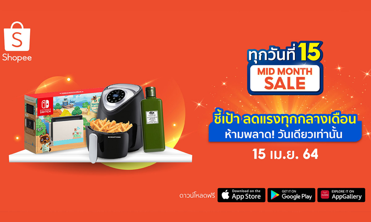ส่งความคุ้มค่าแบบชุ่มฉ่ำให้นักช้อปออนไลน์กับแคมเปญ “Mid Month Sale ลดแรงกลางเดือน” วันที่ 15 เมษายน 2564