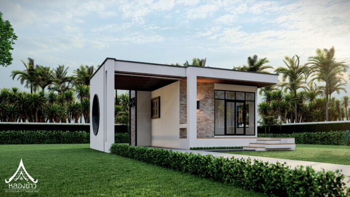 แบบบ้านชั้นเดียวสไตล์โมเดิร์นมินิมอล หลังเล็กกะทัดรัด 60 ตรม มีระเบียงหน้าบ้านรับธรรมชาติ และอากาศสดใส