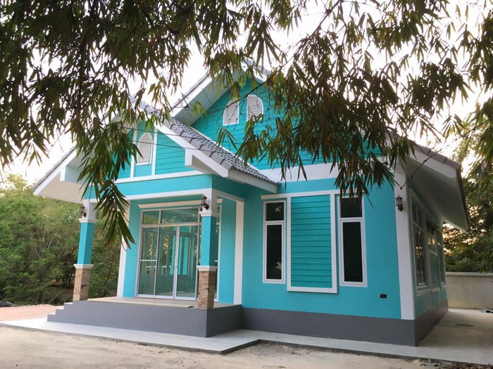 แบบบ้านชั้นเดียวโทนสีฟ้า สวยงามสบายตา สดใสที่ภายนอก อ่อนโยนที่ภายใน