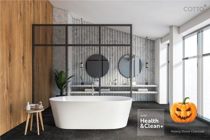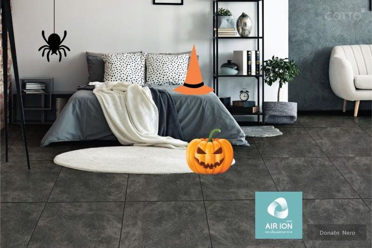 ก่อนจะ ทริค ออ ทรีท ไปชมกระเบื้องสีดำในหลากหลายสไตล์ ที่ COTTO จัดมาโชว์เป็นไอเดียเล็ก ๆ ต้อนรับเทศกาลฮาโลวีน ชุดนี้ ต้องบอกกันก่อนว่า นอกจากความงามและดีไซน์ของกระเบื้องสีดำ ที่ขับเสน่ห์ของความมืดมิดให้ดูมีพลังน่าหลงใหลแล้ว คุณสมบัติของกระเบื้อง คอตโต้ที่นำมาโชว์ในชุดนี้ ยิ่งเพิ่มออร่าให้ทุกพื้นผิวมีเสน่ห์ แบบลึก ๆ แต่ไม่ลับ ควรสัมผัสเพิ่มมากขึ้น ด้วยเป็นกระเบื้องที่มาพร้อมกับคุณสมบัติ Health & Clean ไม่ว่าจะเป็นกระเบื้องยับยั้งแบคทีเรีย (Hygienic Tiles หรือ HYG) ที่มีสาร Silver Nano ปล่อยประจุบวกเพื่อกำจัดเชื้อแบคเทีเรียได้มากกว่า 90% กระเบื้องป้องกันการลื่นล้ม Anti-Slip (R11) หรือ กระเบื้องฟอกอากาศ (AIR ION) ดักจับฝุ่น PM2.5 ได้ถึง 89 % พร้อมเพิ่มมวลอากาศสดชื่น ตลอด 24 ชั่วโมง โดยไม่ใช้ไฟฟ้า โดยปล่อยไอออนลบ ระดับ 3,000 ions/cm3 เพื่อทำปฏิกิริยาเข้าจับฝุ่นที่ลอยในอากาศ เมื่อติดตั้งกระเบื้อง AIR ION 40% ของพื้นที่ภายในห้องที่ จะเป็นส่วนหนึ่งที่ช่วยให้ใช้ชีวิตในบ้าน สะอาด ปลอดภัยทุกการสัมผัสเพื่อสุขภาวะที่ดีของทุกคนในครอบครัว เติมเต็มความอุ่นใจให้กับทุกพื้นที่ในบ้านด้วย