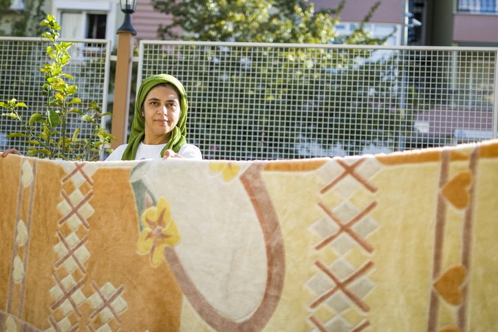 - นำพรมเช็ดเท้าออกไปนอกบ้าน พร้อมสะบัดทำความสะอาด