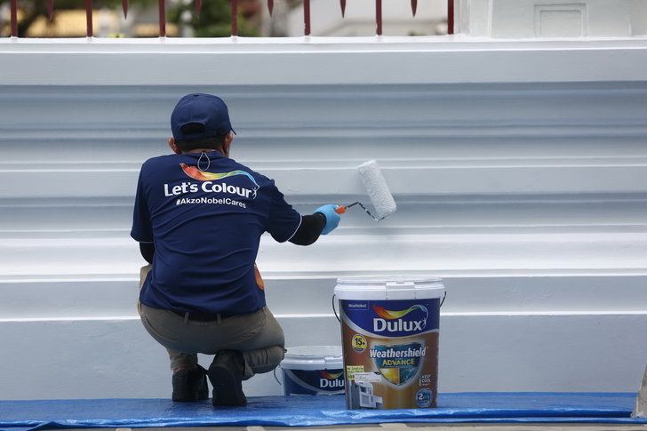 งานบูรณะทาสีของอั๊คโซ่ โนเบล เป็นส่วนหนึ่งของโครงการเพื่อสังคมของสีดูลักซ์ Let’s Colour ครอบคลุมพื้นที่กำแพงรอบองค์พระปรางค์ ซุ้มประตูมงกุฎ ลานหน้าพญายักษ์วัดแจ้ง ฐานรอบองค์พระปรางค์ อาคารอุโบสถด้านหน้า 2 อาคาร และทางเดินข้างพระปรางค์ด้านหอเหลือง
