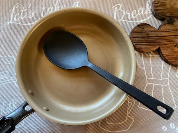 การใช้ตะหลิวหรือทัพพีที่ทำจากสแตนเลสหรือโลหะอาจไปขูดพื้นผิวกระทะ และทำให้เกิดรอยขีดข่วนบนกระทะได้ ส่งผลให้พื้นผิวกระทะชำรุดได้ง่าย ควรเลือกใช้ตะหลิวหรือทัพพีที่ทำจากไม้หรือเรซินซึ่งทนต่อความร้อนเพื่อยืดอายุการใช้งานของกระทะ
