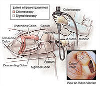 Colonoscopy หมายถึงการตรวจลำไส้ใหญ่ตลอดทั้งหมดไม่ว่าจะเป็นส่วนตรง ส่วนกลาง หรือส่วนท้าย ลักษณะที่ปรากฎจากการส่องกล้องตรวจจะช่วยยืนยันการวินิจฉัยเนื้องอกที่เกิดขึ้นได้อย่างชัดเจน นอกจากนี้ยังสามารถตัดชิ้นเนื้อมาตรวจลักษณะของเซลล์ได้อีกด้วย เรียกว่าตรวจทางพยาธิวิทยา