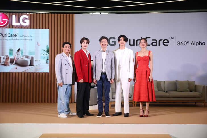 บริษัท แอลจี อีเลคทรอนิคส์ (ประเทศไทย) จำกัด เปิดตัวเครื่องฟอกอากาศ LG PuriCare 360° Alpha Pet ซึ่งเป็นเครื่องฟอกอากาศที่พัฒนาขึ้นเพื่อเน้นตอบโจทย์การใช้งานสำหรับครอบครัวที่มีสัตว์เลี้ยงภายในบ้านเป็นครั้งแรก โดดเด่นด้วยฟังก์ชันการใช้งานหลากหลายสำหรับครอบครัวที่มีสัตว์เลี้ยงโดยเฉพาะ PET Mode ตอบโจทย์การใช้งานสำหรับสัตว์เลี้ยง ซึ่งมีประสิทธิ์ภาพที่มากกว่า กรองไรขนสัตว์ได้ดียิ่งกว่าเดิมถึง 30%[1] ช่วยลดกลิ่นสัตว์เลี้ยงภายในห้องได้ถึง 94%[2] และฟิลเตอร์กรองสำหรับกำจัดมลพิษทางอากาศและกลิ่นได้มากถึง 4 เท่า[3] ตอบรับการใช้งานในทุกขนาดพื้นที่ทั้งรุ่น AS65GDBY0 เหมาะกับห้องหรือพื้นที่ที่มีขนาดสูงสุด 61.2 ตารางเมตร และรุ่น AS10GDBY0 ที่สามารถครอบคลุมพื้นที่ได้มากกว่า 104 ตารางเมตร และภายในงานพบกับ ‘หมอเน๋ง – ศรัณย์ นราประเสริฐกุล’ นักแสดงและสัตว์แพทย์ พร้อมกับ ‘คุณโยเกิร์ต – ณัฐฐชาช์ บุญประชม’ นางแบบและเซเลบริตี้ชื่อดัง และ ‘คุณมิกซ์ – สหภาพ วงศ์ราษฎร์’ ศิลปินและว่าที่สัตว์แพทย์ ที่มาร่วมแบ่งปันเทคนิคและประสบการณ์การอยู่ร่วมกับสัตว์เลี้ยงในบ้าน รวมถึงเหล่าอินฟลูเอนเซอร์ชื่อดังที่มาเปิดประสบการณ์เครื่องฟอกอากาศสำหรับครอบครัวที่มีสัตว์เลี้ยง สัมผัสอากาศสะอาดได้อย่างทั่วถึงพร้อมกับสัตว์เลี้ยงแสนรักของตัวเอง