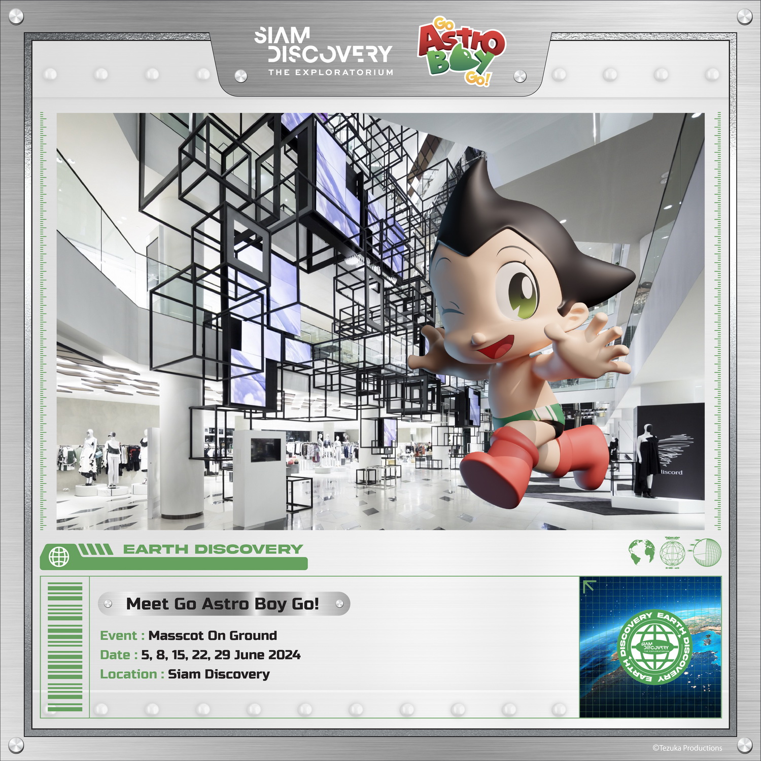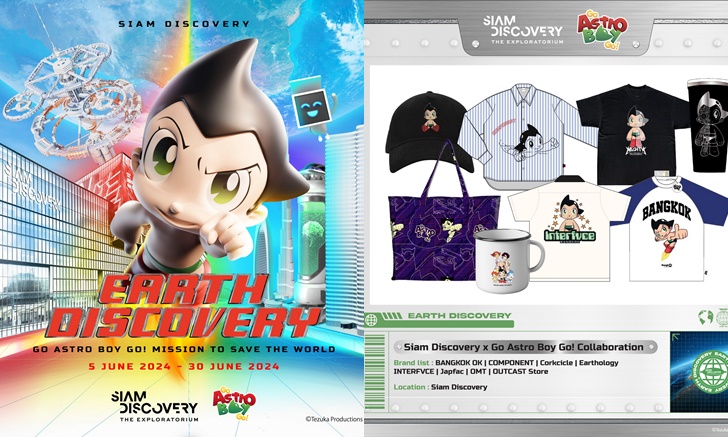 สยามดิสคัฟเวอรี่ ดิเอ็กซ์พลอราทอเรี่ยม ตอกย้ำการเป็น The Biggest Arena of Lifestyle Experiments ที่เต็มไปด้วยประสบการณ์สุดตื่นเต้น พร้อมให้ทุกคนเข้ามาค้นพบ (Experiment), สร้างสรรค์ (Create) และพัฒนา (Cultivate) ได้อย่างไม่รู้จบ จัดแคมเปญ Earth Discovery: Go Astro Boy GO! - Mission To Save The World เนื่องในวันสิ่งแวดล้อม 5 มิถุนายน ตอกย้ำความเป็นผู้นำในการสร้างสังคมที่ยั่งยืน และยืนหยัดเป็นต้นแบบสร้างองค์ความรู้ในการรักสิ่งแวดล้อม จัดงาน Siam Discovery x Go Astro Boy GO! เป็นครั้งแรกในประเทศไทย โดยร่วมคอลแลบอเรชั่นกับ “Go Astro Boy GO!” เวิลด์คาแรคเตอร์สุดฮอตระดับโลกมาร่วมสร้างปรากฎการณ์สนุกกับกิจกรรมมากมาย ระหว่างวันที่ 5 - 30 มิถุนายน 2567 ที่ สยามดิสคัฟเวอรี่ ดิเอ็กซ์พลอราทอเรี่ยม