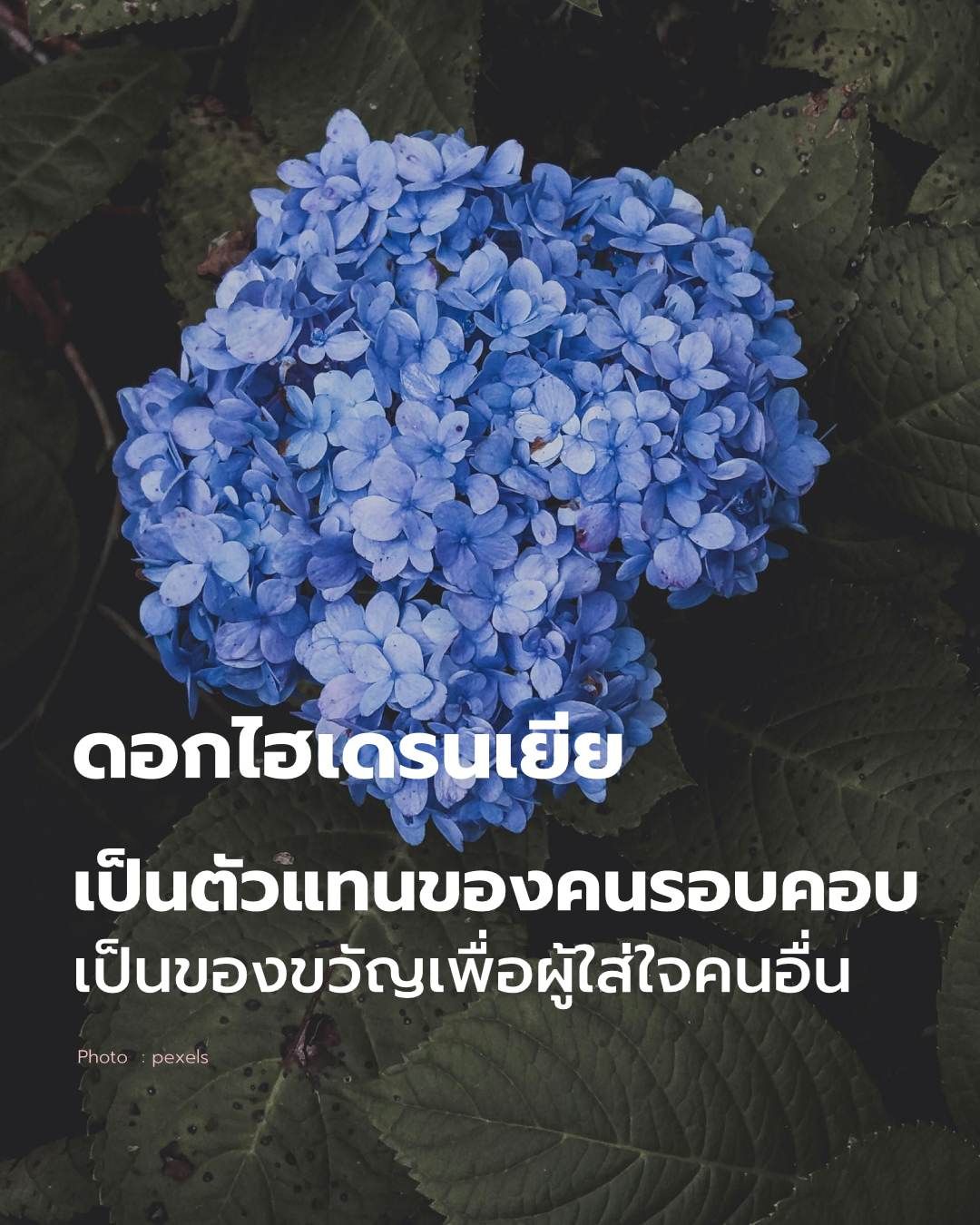 8.ดอกไฮเดรนเยีย เป็นตัวแทนของผู้ที่มีความคิดรอบคอบ มีเหตุผล ดอกไม้ชนิดนี้เป็นตัวแทนของความเข้าใจอย่างลึกซึ้งและความกตัญญู และเป็นของขวัญสำหรับผู้ที่ใส่ใจทั้งความต้องการของตนเองและผู้อื่น