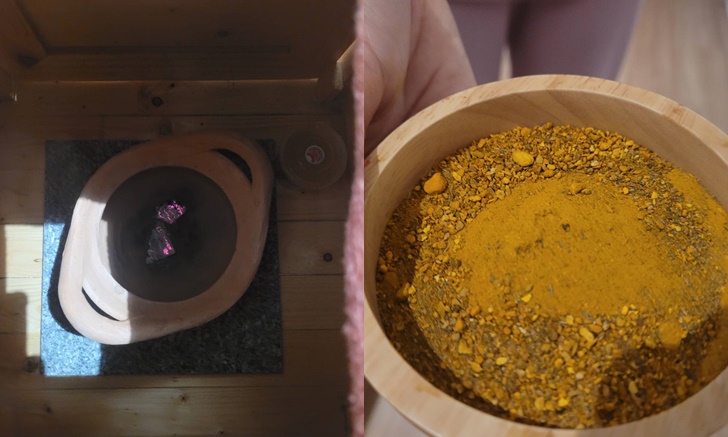 2.นั่งถ่านบนเก้าอี้เป็นเวลา 20-30 นาที (ขึ้นอยู่กับสุขภาพของแต่ละบุคคล) โดยจะมีการปรับอุณหภูมิความร้อนของถ่านด้านล่างให้เหมาะสม ระหว่างนี้พนักงานทรีทเมนต์จะคอยจับชีพจรเพื่อดูความเหมาะสมในการปรับอุณหภูมิของถ่านที่อยู่ด้านล่าง