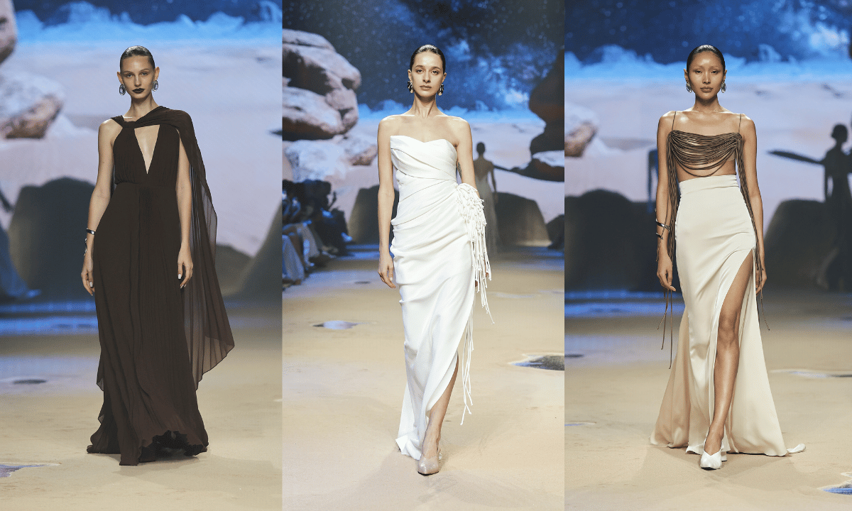 ต่อด้วยแบรนด์ EVERYWEEK.OUTFIT มาพร้อมกับคอลเล็กชั่น “Soul in Stardust” ที่สะท้อนประกายของแสงในตัวตน ผ่านเสน่ห์ของกลิตเตอร์อันเป็นลายเซ็นของ Everyweek.outfit เน้นการดีไซน์ที่ผสมผสานความสง่างามเหนือกาลเวลาภายใต้แนวคิด ‘Glitter is Forever Fashion’ อีกทั้งยังให้ความสำคัญเรื่องของ Sustainable Fashion หรือวิถีแฟชั่นยั่งยืนอย่างจริงจัง พร้อมสร้างสรรค์ผลงานที่ยังคงเอกลักษณ์ด้วยลวดลายปักเฉพาะตัว เพื่อให้แต่ละชุดกลายเป็น Timeless Piece ถือเป็นจุดเริ่มต้นสำคัญของการนำแนวคิดความยั่งยืนมาผสานเข้ากับดีไซน์ของแบรนด์