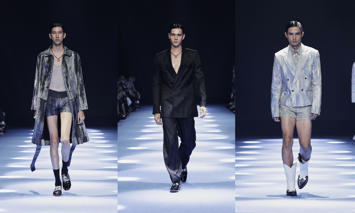 และปิดท้ายค่ำคืนด้วย THEATRE กับโชว์คอลเล็กชั่น ‘Starman 1984’ เพื่อเฉลิมฉลองวาระ 4 ทศวรรษแห่งความสำเร็จของแบรนด์ พูดถึงบทสรุปจากจินตนาการในการสร้างแบรนด์ THEATRE ตั้งแต่ปี 1984 จากความรักในการผสมผสานเนื้อผ้า ความต่างทางวัฒนธรรม งานฝีมือ และความลื่นไหลทางเพศอันเป็นแกนหลัก โดยในคอลเล็กชั่นนี้ยังตอกย้ำแนวคิด Sustainable Fashion ที่แบรนด์ให้ความสำคัญมาตลอด ทั้งการใช้ผ้าทอสีย้อมธรรมชาติ, การนำเส้นด้าย Deadstock มาทอใหม่, การนำเศษผ้าจากการตัดเย็บมาสร้างสรรค์เป็นผืนผ้าใหม่ ไปจนถึงการตั้งคำถามต่อสังคมไทยผ่านผลงานในคอนเซปต์ ‘Made in Theatre Made in Thailand’