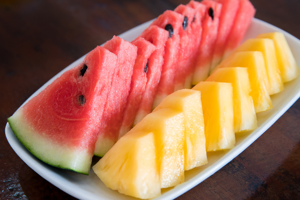 1. แตงโม (Watermelon) แม้จะฉ่ำน้ำและช่วยดับกระหายได้ดีเยี่ยม แต่แตงโมเป็นผลไม้ที่มีค่าดัชนีน้ำตาลสูงมาก เมื่อทานเข้าไปจะทำให้ระดับน้ำตาลในเลือดพุ่งขึ้นอย่างรวดเร็ว คำแนะนำ: ควรทานไม่เกินวันละ 1 ถ้วยเล็ก