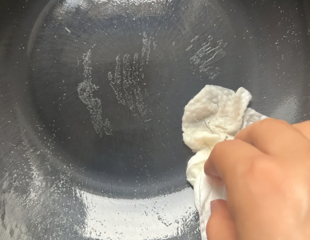 • เช็ดกระทะให้แห้งทันทีด้วยผ้าหรือกระดาษครัว