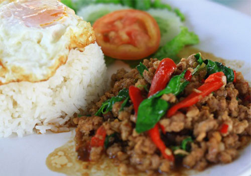 นี่ก็เป็นอีกเมนูสุโค่ยที่ชาวญี่ปุ่นร้อง ‘ โออิชิ’ มากๆ ต้องยกให้เมนูข้าวผัดกะเพราโปะไข่ดาวเสิร์ฟคู่กับข้าวสวยร้อนๆ ทานคู่กับสลัดผักค่ะ ชาวญี่ปุ่นบอกว่าอร่อยแบบฟินลืมซูชิไปเลย