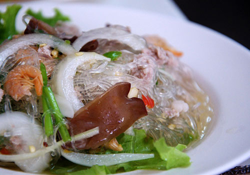 อีกเมนูหนึ่งที่ชาวญี่ปุ่นเรียกชื่อแปลกไม่แพ้เมนูอื่น ต้องนี่เลย ‘สลัดวุ้นเส้น’ หรือถ้าบ้านเราก็ ‘ยำวุ้นเส้น’ น่ะแหละ แต่ที่ญี่ปุ่นจะเอาวุ้นเส้นไปผัดแทนการยำเหมือนบ้านเรา ทำให้รสชาติค่อนไปทางจืด แต่เอาเถอะถึงจะดูไม่ใช่ยำวุ้นเส้น แต่เป็นเมนูที่อยู่ในใจชาวญี่ปุ่นก็โอเค๊