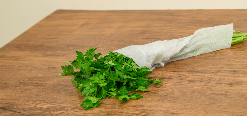 - ม้วนกระดาษห่อผักให้มิดชิด กระดาษจะช่วยดูดซับความชื้นส่วนเกินไม่ให้โดนใบโดยตรง