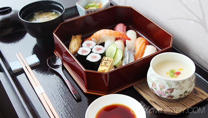 ต่อไปเป็นเซ็ตเบนโตะซูชิมีหน้าหลากหลายให้เลือกทานเช่นกันเช่นไข่ตุ๋น กุ้ง ปลามากุโร ปลาไหล หมึก น่ากินใช่มั้ยล่ะครับ
