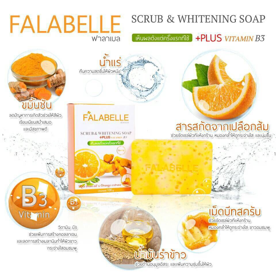 ซึ่งคงจะดีไม่น้อยถ้าจะมีผลิตภัณฑ์ที่จะมาช่วยคุณทำความสะอาดผิว และยังสามารถใช้เป็นสครับขัดผิวได้ในคราวเดียวกัน เรียกว่าเป็นการดูแลผิวพรรณแบบ 2 IN 1 ซึ่งเป็นคุณสมบัติที่มีครบในสบู่สมุนไพร Falabelle ที่ให้คุณดูแลผิวพรรณไปพร้อมๆ กับการอาบน้ำ และยังมีเม็ดบีทที่ช่วยขัดเซลล์ผิวที่แห้งกร้านและหมองคล้ำจากการเผชิญกับมลภาวะต่างๆ ทำให้ผิวขาวกระจ่างใสอมชมพู สีผิวเรียบเนียนสม่ำเสมอ นอกจากนี้การขัดผิวยังเป็นการไปกระตุ้นกระบวนการผลัดเซลล์ผิวตามธรรมชาติให้ทำงานดีขึ้น และช่วยลดปัญหารูขุมขนอุดตัน ซึ่งเป็นต้นเหตุของสิวอีกด้วย