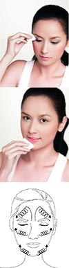 เมื่อเนื้อออยล์ซึมทั่วใบหน้าให้ใช้นิ้วนวดเป็นวงจากบริเวณที่กว้างก่อนเช่นข้างแก้ม หน้าผาก ไล่ไปจนถึงบริเวณเล็กๆ เช่น ด้านข้างจมูก บริเวณริมฝีปาก