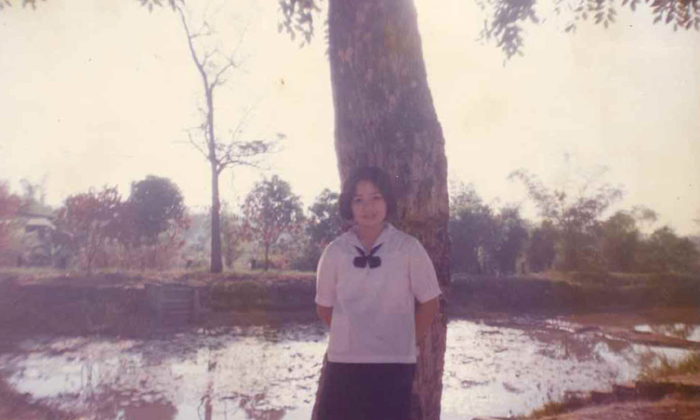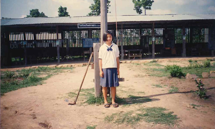 คือตอนนั้นเมื่อจบป. 6 ทางคุณครูอยากให้ฉันเข้าไปเรียนต่อในตัวจังหวัด ซึ่งฉันก็อยากไป แม่เลยกลับมาอยู่ด้วยเพื่อช่วยดูแลยาย ในวันที่ยายจากเราไป ไม่ต้องพูดถึงความเสียใจ รักยายมากต่อสู้ด้วยกันมาตลอด ความรู้สึกตอนนั้นเหมือนอยู่บนโลกนี้คนเดียวเลย มันเคว้งมาก ทำอะไรไม่ถูกเลย พอจัดพิธีศพเสร็จฉันก็กลับไปอยู่หอพักสตรีใกล้โรงเรียน น้องชายก็อยู่ในหมู่บ้านเหมือนเดิมกับลุงและเพื่อนบ้าน ส่วนแม่ก็กลับไปทำงาน แต่ละเดือนแม่ก็ส่งค่าเช่าห้องมาให้ คือพอแต่ให้ค่าห้อง เหลือนิดหน่อยก็ต้องประหยัดแบบสุดๆ ส่วนใหญ่จะไปขออาศัยกินข้าวกับบ้านเพื่อนค่ะ
