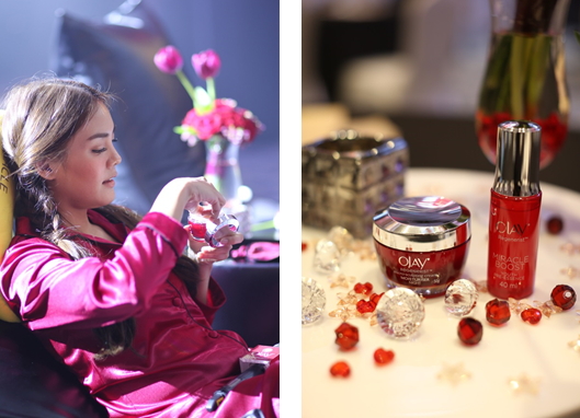 “แต่ตอนที่เจนี่ใช้ก่อนหน้านี้ มันยังไม่มีตัว Overnight Miracle ที่มี 2 ตัว โอเลย์ มิราเคิล บูทส์ ยูธ พรีเอสเซนส์กับ ไมโครสกัลป์ติ้ง ไนท์ ครีม ซึ่งพอเจนี่ได้เอา 2 ตัวนี้มาใช้คู่กัน รู้สึกเลยว่าเวลาตื่นขึ้นมาตอนเช้าหน้าหน้าจะชุ่มชื้น แล้วรองพื้นก็ติดทนดีกว่าปกติ เหมาะกับอากาศบ้านเราด้วย เพราะอย่างถ้าเป็นของเมืองนอกมันอาจ เหนียวเหนอะเกินไป เพราะเมืองนอกมันหนาวไง แต่บ้านเรามันไม่ได้หนาว แล้วเรานอนห้องแอร์ เพราะฉะนั้นมันก็เป็นสิ่งที่เราละเลยไม่ได้ เพราะห้องแอร์มันก็ทำให้ผิวแห้งได้เหมือนกัน”