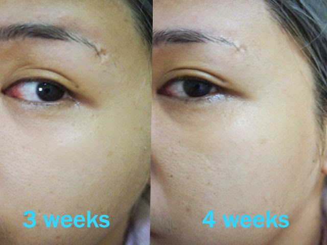คือรอยแผลเล็กลง ยังเห็นเป็นรอยแผลอยู่ แต่ต่างจากรูปแรกที่ให้ดูมาก