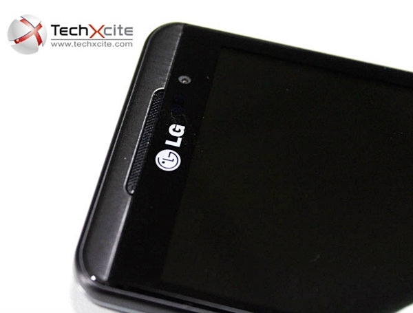 ส่วนทางด้านบนของหน้าจอ LG Optimus 3D จะมีเซนเซอร์ตรวจวัดแสงและเซนเซอร์ตรวจจับการหมุนหน้าจอวางไว้แบบเนียนๆ ขณะที่ส่วนที่เห็นได้ชัดก็จะมีโลโก้ของ LG เอง, กล้องหน้าแบบ VGA สำหรับการใช้งานวิดีโอคอล และตะแกรงลำโพงสำหรับสนทนาโทรศัพท์ทางด้านบนสุด