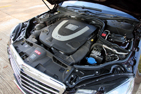 สำหรับเครื่องยนต์ The new E 500 นี้ เป็นเครื่องยนต์ค่อนข้างใหญ่ครับ เป็นเครื่องขนาด V 8 ปริมาตรกระบอกสูบ 5,462 CC. พร้อมด้วยเกียร์อัตโนมัติ 7 จังหวะ ให้แรงม้าสูงสุด 285 กิโลวัตต์/388 แรงม้า ที่ 6,000 รอบต่อนาที แรงบิดสูงสุด 530 นิวตัน-เมตร ที่ 2,800-4,800 รอบต่อนาที อัตราเร่ง 0-100 กิโลเมตรต่อชั่วโมง ที่ 5.2 วินาที อัดความเร็วสูงสุดได้ที่ 250 กิโลเมตรต่อชั่วโมง