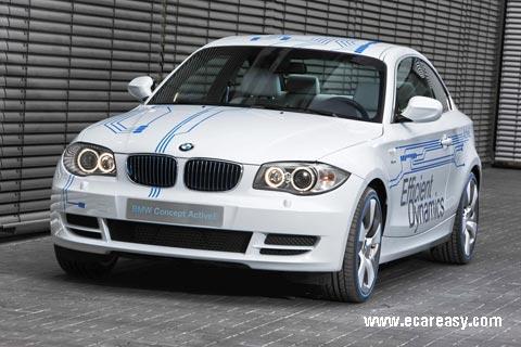 BMW Concept ActiveE เป็นอีวีชนิดมีปลั๊กชาร์จแบตเตอรี่ในตัว (Plug-in) เช่นเดียวกับ MINI E พัฒนาจาก 1 Series Coupe ใช้เลย์เอาต์ขับเคลื่อนล้อหลังของรุ่นมาตรฐาน โดยถอดเครื่องยนต์ออกและติดตั้งมอเตอร์ขับเคลื่อนไว้ด้านหลัง
