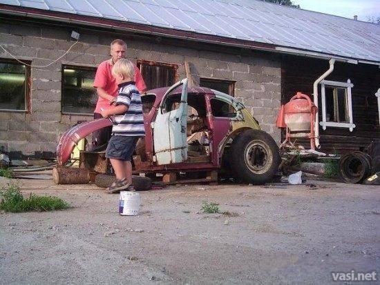 หลายคนอาจจะไม่เคยนึกถึง แต่พ่อต้นแบบคนนี้กำลังใช้เวลาในการสร้างรถ Volk Swagen Bettle ให้มันสามารถแล่นได้จริง พร้อมกำลังหยิบเล็กๆน้อยจากลูกชายของเขาที่คงจะสนุกสนานในการได้มีส่วนร่วมสร้างรถคันนี้ขึ้นมา