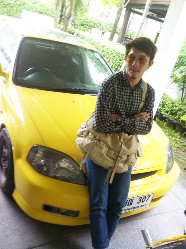 ...จุดเด่นของรถคันนี้ ถูกดัดแปลงจากประตูเดิม 2 ประตู ให้กลายมาเป็น 3 ประตู คือผมต้องไปทำเรื่องดัดแปลงรถ เพื่อไม่ให้เป็นรถเถื่อน ต้องให้วิศวกรดู พยายามทำให้ถูกต้องตามกฏหมายหมายครับ และเดิมทีตัวรถเป็นสีดำ ผมก็ได้เปลี่ยนเป็นสีเหลือง ชอบสีเหลืองเพราะว่า ใช้สีของฮอนด้า มันเป็นสีตัวต้นแบบของรถที่ญี่ปุ่นมีอยู่ ใช้ไปใช้มาก็เลยเรียก "เจ้าเหลือง" มันซะเลย (หัวเราะ)