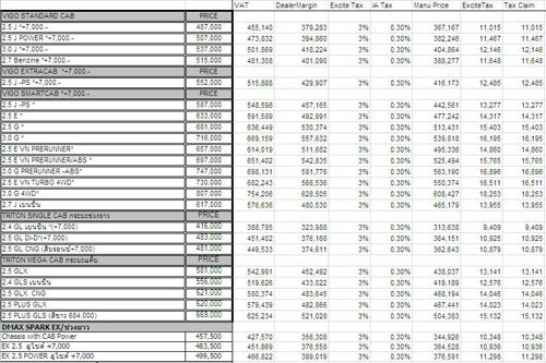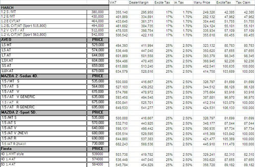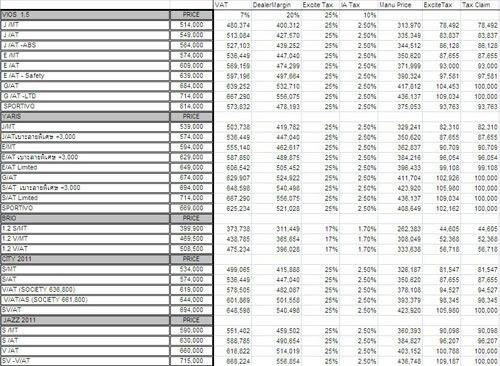ทั้งนี้เ คุณ Dark Archon จากพันทิป ดอต คอม ได้คำนวนราคารถเมื่อได้รับการลดภาษีในรุ่นที่อยู่ในหลักเกณฑ์ ไว้คร่าวๆ
