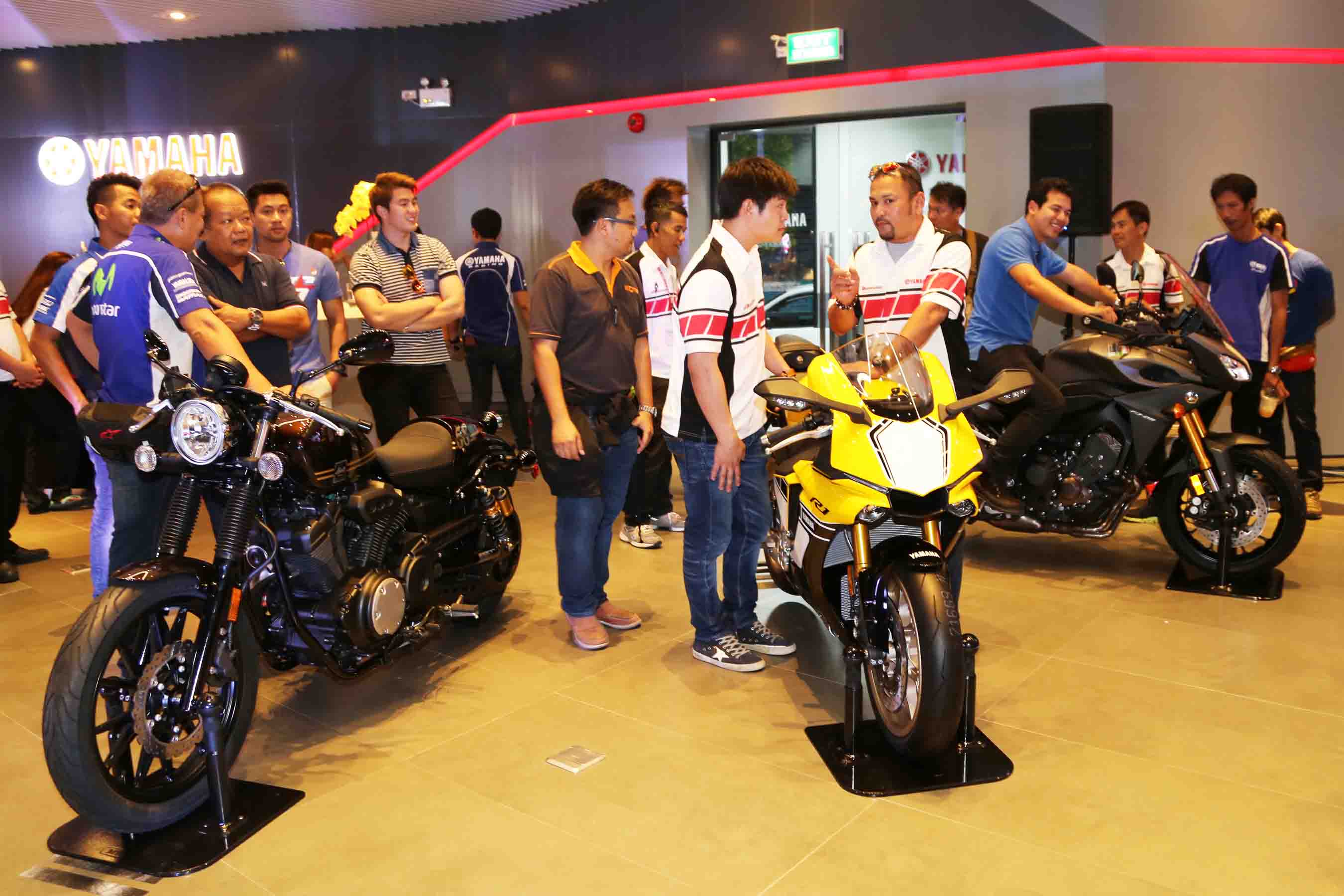 ไลฟ์สไตล์ทุกรูปแบบให้แก่ลูกค้าที่มารับบริการ และนัดหมายการทำกิจกรรมต่างๆ ร่วมกันได้อย่างเต็มที่ นอกจากการเปิด "Yamaha Riders' Club" อย่างเป็นทางการแล้ว เรายังได้มีการเปิดตัวรถใหม่จำนวน 3 รุ่น คือ YZF-R1 60th Anniversary Edition สี และลายพิเศษ ฉลอง 60 ปี การเข้าร่วมแข่งขันในรายการระดับโลก, FJ-09 The two souls of the dark side รถแอดเวนเจอร์ทัวร์ริ่งที่มาพร้อมกับความดุดันของเครื่องยนต์ 3 สูบ, Bolt-C The cafe' racer style ออกแบบมาเพื่อนักบิด ผู้หลงใหลในสไตล์คาเฟ่โดยเฉพาะ โดยทั้ง 3 รุ่น จะเปิดรับจองในต้นเดือนธันวาคมนี้"
