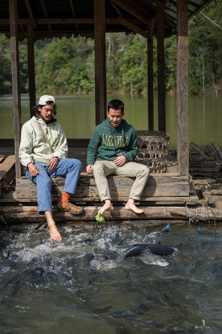 จากนั้นก็แวะชุมชน ไปเจอสถานที่ท่องเที่ยวใหม่ เป็นบ่อปลา