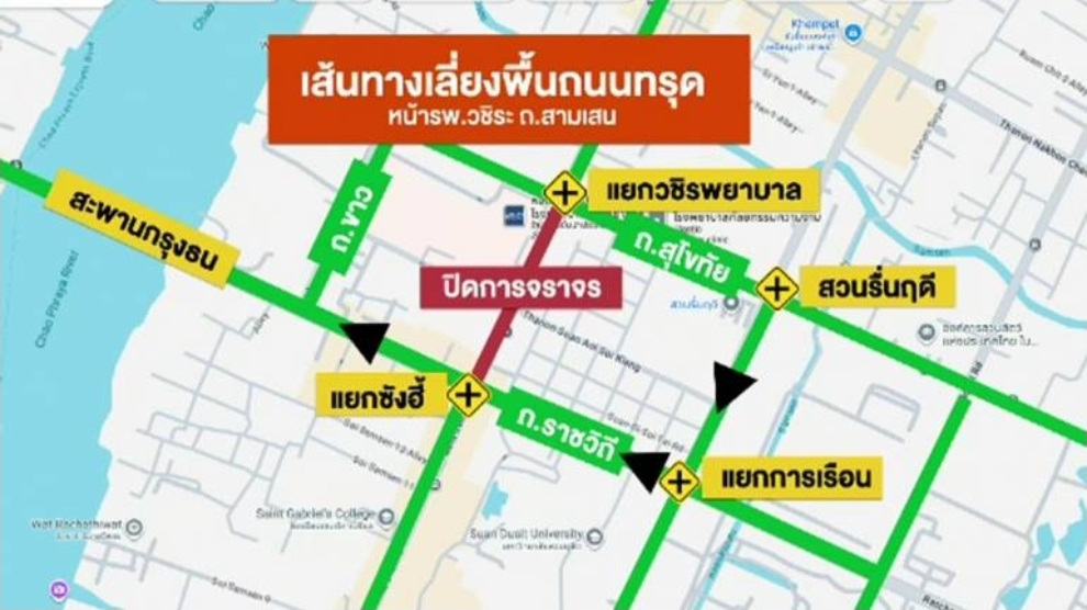 ชี้ทางเลี่ยง! ถนนสามเสน ที่ยุบตัว เส้นไหนใช้แทนได้