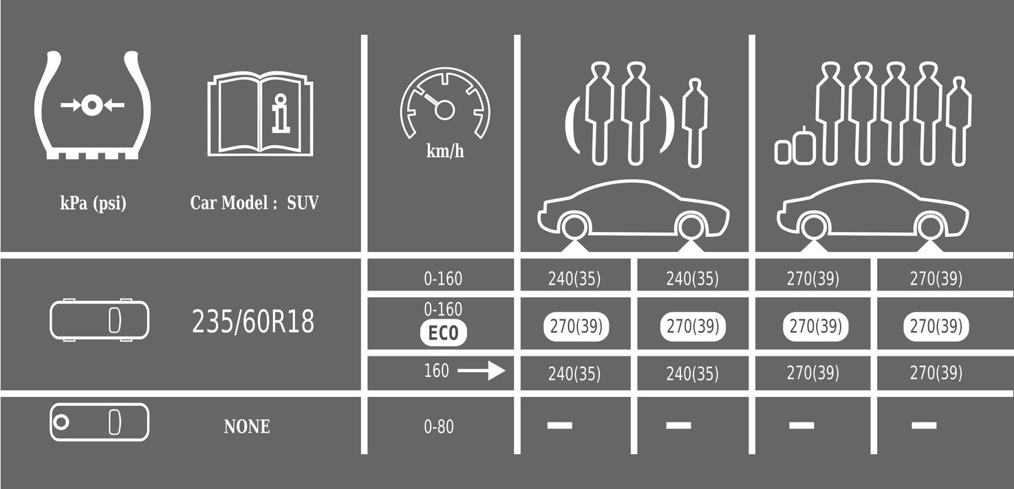 รูปคนเต็มคัน/ของเต็มรถ: คือค่าลมยางที่ต้องเพิ่มขึ้นเมื่อบรรทุกหนัก (ตัวเลขจะสูงกว่า)
