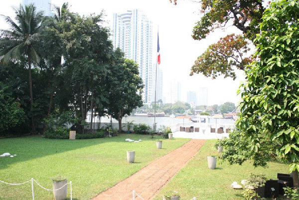 ทำเนียบเอกอัครราชทูตฝรั่งเศส เมื่อมองจากแม่น้ำเจ้าพระยา
