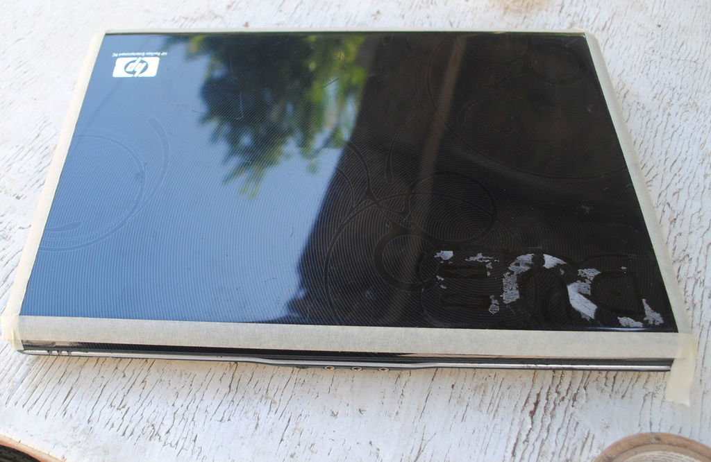 1.ทำความสะอาดฝาหลังโน๊คบุ๊คให้เงียบร้อยแล้วติดเทปกาวบริเวณขอบฝาหลังโน๊คบุ๊คให้เรียบร้อยเพื่อป้องกันสีที่พ่นเลอะ