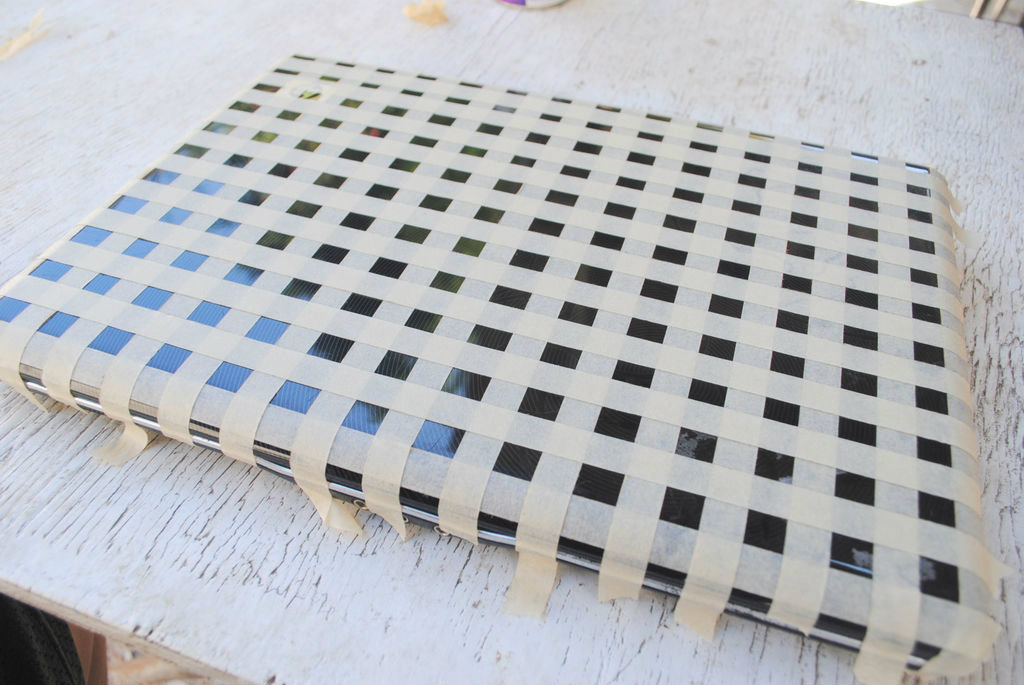 2.วัดระยะห่างวนการติดให้มีระยะห่างเท่าๆกันอาจใช้ดินสอ กำหนดตำแห่งเอาไว้จากนั้นติดเทปกาวสลับตามแนวโดยทำแนวใดแนวหนึ่งก่อน