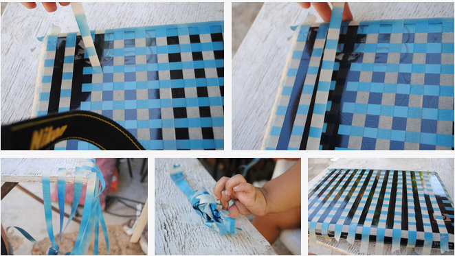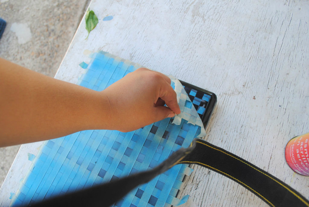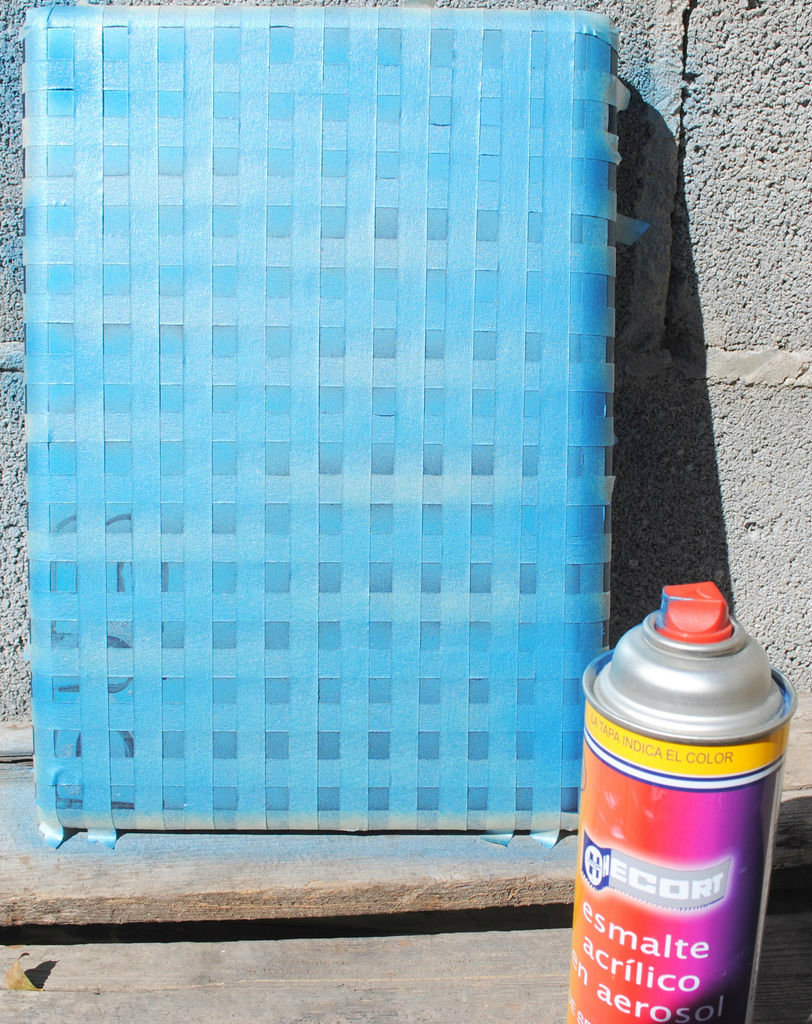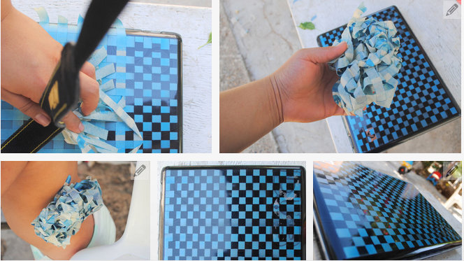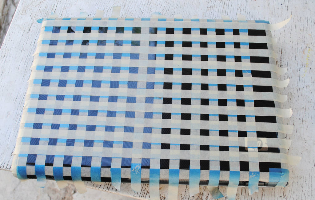 5.ติดกระดาษกาว์ปิดทับในส่วนที่พ่นสีลงไปใหม่และติดเทปกาวสลับลงไปอีกที่