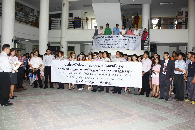 ม.บูรพาป่วน! อาจารย์-บุคลากร รวมตัวกว่า 100 คนให้ยกเลิกแต่งตั้งรักษาการอธิการบดี