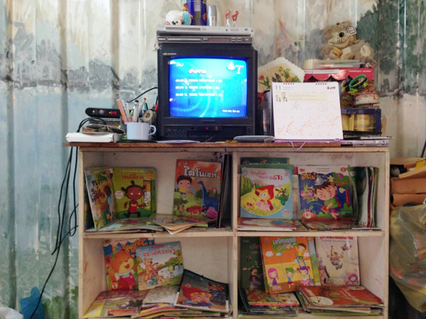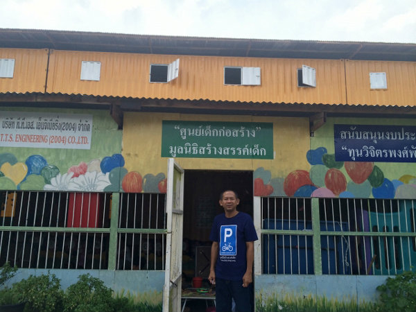มุมลึกสุดของพื้นที่บริเวณบ้านพักคนงานก่อสร้าง มีอาคารเล็กๆ หลังหนึ่ง ที่สร้างต่อเติมมาจากตู้คอนเนอร์ 1 ตู้ มีเสาธงชาติไทยอยู่ด้านหน้าอาคาร ที่นี่เป็นที่พักของครูคนหนึ่ง ครูเพียงคนเดียวที่มาคอยสอนนักเรียนขาจรหลายสิบชีวิต นักเรียนของคุณครูคนเดียวคือเด็กๆ ต่างด้าว ทั้งกัมพูชา พม่า และเวียดนามปะปนกัน เด็กๆ เป็นลูกของคนงานในไซต์ก่อสร้างแห่งนี้ หากจะเรียกว่าที่นี่เป็นโรงเรียนแห่งแรกในบริเวณบ้านพักคนงานก่อสร้างของประเทศไทยก็ไม่น่าผิด แม้ว่าป้ายที่หน้าอาคารเขียนว่า "ศูนย์เด็กก่อสร้าง มูลนิธิสร้างสรรค์เด็ก"