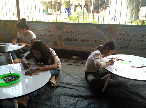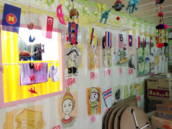 "เราก็ตามไป อยู่แถวราชพฤกษ์ จากที่คุยกันไว้ว่าจะมีแปลนโรงเรียนเป็นสัดส่วน ถึงเวลาพอไม่มี เราไปเห็นตู้คอนเทนเนอร์ เราก็เอาตู้นั้นแหละมาทำห้องเรียน มันก็ค่อยๆ เป็นรูปเป็นร่างขึ้น หาตู้ หาของมาใส่ กว่าจะได้มาก็เหนื่อย แต่ถือว่า 7-8 ปี แล้วได้มาแบบนี้ก็โอเคแล้ว เพราะในพื้นที่ของที่พักคนงานก่อสร้างแต่ละแห่ง มีคนมาควบคุมหลายส่วน มีคนอยากมาเช่าที่ทำร้านค้า ทำโน่นทำนี่ จึงเป็นเรื่องยากที่มีโรงเรียน เพราะมันไม่สร้างรายได้ แต่บางทีระดับผู้บริหารเข้าใจ สั่งลงมาระดับคนคุมที่พักคนงานก่อสร้างไม่เข้าใจ ก็ไม่ได้สร้างหรอก โชคดีที่ทางบริษัทที.ที.เอส. เข้าใจเรื่องนี้จริงๆ แล้ว"