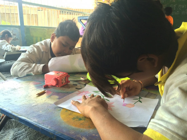"ถ้าเด็กอยากวาดรูป ผมก็เปลี่ยนให้วาดรูป ไม่เคยไปบอกว่าต้องเป็นเส้น เป็นรูปอย่างนั้นอย่างนี้ ให้วาดตามที่เขาคิด อะไรก็สวยหมด อยากวาดอะไรก็วาดไป เรียนภาษาไทย ก็ไม่เคยบอกว่าต้องอ่านออกเขียนได้ขนาดไหน ขอให้อ่านออกและแปลได้ เวลาเด็กแปล อีกา ได้ เรารู้สึกดีมาก บางทีก็ไปรู้ว่าเด็กอ่านได้ จำได้ตอนไปเดินตามในแคมป์ ผ่านห้องเขาแล้วได้ยินเขาท่อง กอ-อา-กา , จอ-อำ-จำ , ลอ-อี-ลี-ลอ-อา-ลา เด็กบางคนยังเล็ก เวลาอยู่ในห้องเขาไม่พูด นั่งฟังเฉยๆ แต่กลับบ้านไป เขาจำไปพูดได้ บางทีก็วัดการเรียนแบบตัวเลขไม่ได้ แต่วัดเป็นความสุข เด็กมีความสุขที่ได้อ่านและเวลามีอาสาสมัครมาสอน ผมก็ไม่เคยบอกว่าเขาต้องสอนวิชาอะไร สอนที่ตัวเองชอบ จะสอนอะไรก็สอน เพราะเราเชื่อว่าทุกคนปราถนาดีต่อเด็ก นักศึกษามาช่วยสอนหลังเลิกเรียน ก็มาสอนตอนหนึ่งทุ่มถึงเที่ยงคืน ทำงานประดิษฐ์ เด็กก็อยู่ถึงเที่ยงคืน เพราะเด็กพวกนี้ พร้อมรับตลอดเวลา...ความน่ารักของเขาคือ เราสอนอะไรเขารับหมด เขาอยากรู้อยากเห็น"
