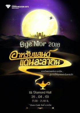 สวยแซ่บอลังการงาน Bye'Nior 2016 อาหรับแลนด์ แดนอะลาดิน ของ คณะนิเทศศาสตร์ มหาวิทยาลัยกรุงเทพ นอกจากจะมีพิธีบายศรีสู่ขวัญ การแสดงโชว์ต่างๆ ของเหล่าคณาจารย์และนักศึกษารุ่นน้องที่ทำให้รุ่นพี่ เพื่อมอบให้เป็นของขวัญสุดพิเศษกับบรรดาลูกศิษย์คณะนิเทศศาสตร์ที่กำลังจะจบการศึกษาในปีการศึกษา 2559