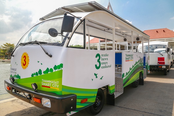 จากปัญหาสิ่งแวดล้อม และการใช้รถยนต์ส่วนตัวของนักศึกษาภายในสถาบัน และเพื่อสนอง SMART CITY มหาวิทยาลัยธรรมศาสตร์ เปิดตัวรถบัสไฟฟ้าพลังงานแสงอาทิตย์ (Solar Bus) และรถบัสพลังงานไฟฟ้า (EV) โดยถือเป็นมหาวิทยาลัยไทยแห่งแรกที่มีการใช้รถบัสประเภทนี้