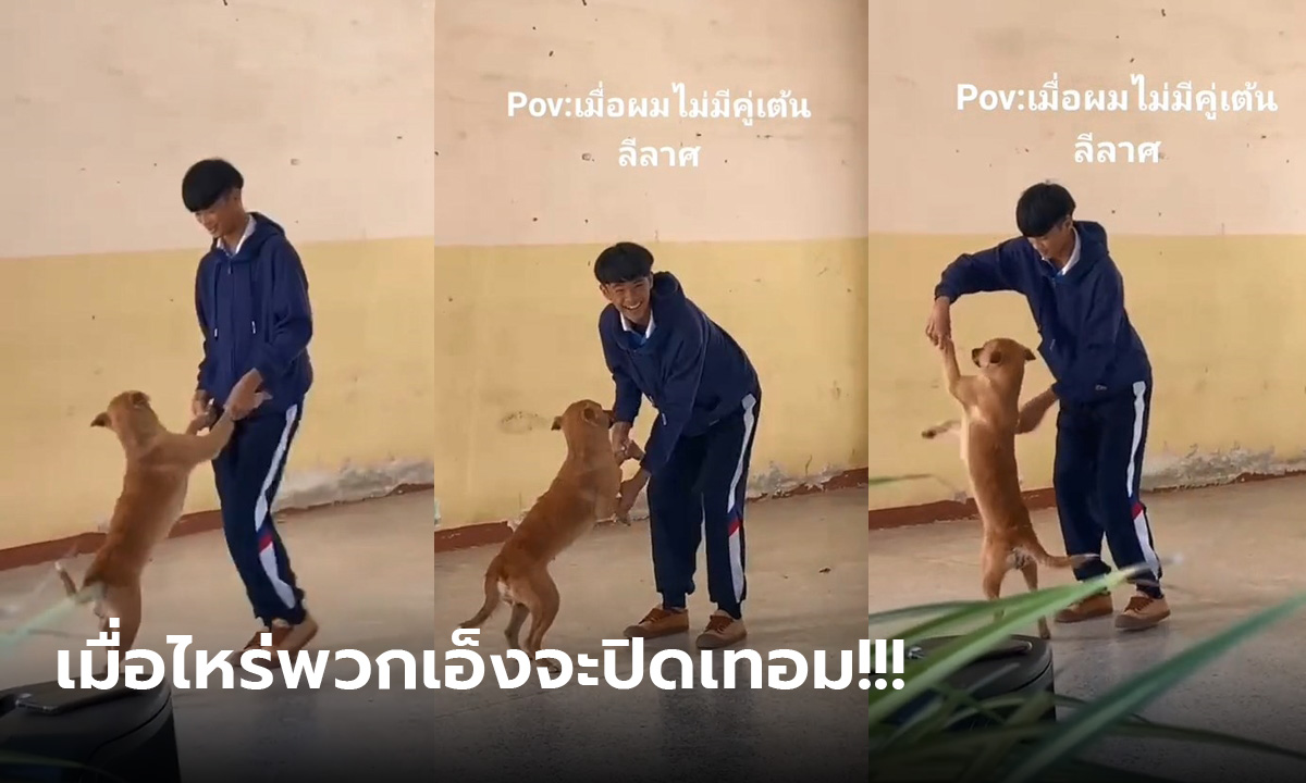 โดยในคลิปได้บรรยายว่า "เมื่อผมไม่มีคู่เต้นลีลาศ" ซึ่งเราจะเห็นได้ว่าหนุ่มนักเรียนคนนี้ได้จับขาหน้าน้องหมาให้ยืนขึ้นและเต้นคู่กันอย่างน่ารัก และที่สำคัญมีการจับหมุนตัว ซึ่งน้องหมาก็ให้ความร่วมมือเป็นอย่างดี สมยอมในแบบไม่ขัดขืน ถึงแม้หน้าตาน้องจะดูงงๆ ก็ตาม