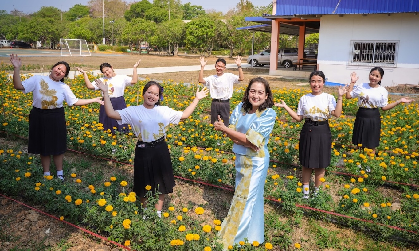 ซีพี ออลล์ สร้างทักษะ วังไพรวิทยาคม ผลิต “ผ้ามัดย้อมจากดอกดาวเรือง” ฝีมือครู-นักเรียน